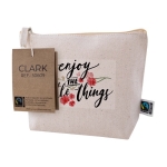 Wenn Sie Ihren Kunden nachhaltige Werbemittel schenken möchten, entscheiden Sie sich für Fair-Trade-Produkte mit Ihrem Logo, wie diesen Kosmetikbeutel.