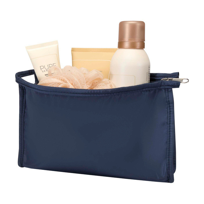 Kulturbeutel aus recyceltem Polyester mit GRS-Zertifikat (Global Recycled Standard), konzipiert für Reise-Toilettenartikel und kleines Zubehör, ohne Platz zu beanspruchen. Das kompakte Design hilft Ihnen, das Wichtigste bei Reisen, Messen oder Tagen außerhalb des Büros zu organisieren. Das Gewebe bietet Widerstandsfähigkeit für den täglichen Gebrauch und ermöglicht eine komfortable Handhabung im Rucksack oder Koffer. Eine praktische Option für Willkommensaktionen, Firmenevents oder Werbegeschenke mit regelmäßiger Nutzung.