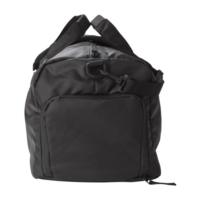 Seesack aus Polyester (600D). 210D Polyester am Reißverschluss, beschichtet mit 600D Polyester. Wasserabweisend, inklusive Reißverschluss. Verstellbare Riemen, kurze Griffe, Schuhfach und eine Reißverschlusstasche an beiden Seiten. Verstärkter Boden.
