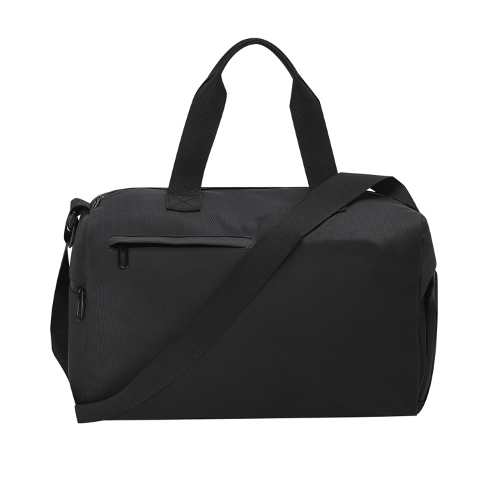 Reisetasche aus Kunstleder mit einem Design, das für Ordnung unterwegs entwickelt wurde. Sie verfügt über ein geräumiges Hauptfach mit wasserfestem Reißverschluss sowie eine seitliche Reißverschlusstasche für schnellen Zugriff. Im Boden befindet sich ein separates Fach, ebenfalls mit Reißverschluss, zum getrennten Transport von Schuhen. Dazu kommen ein verstellbarer Schulterriemen und Tragegriffe für verschiedene Einsatzzwecke. Im Inneren gibt es ein Fach sowie kleine seitliche Fächer für Zubehör. Eine praktische Lösung für HR-Maßnahmen, Veranstaltungen und Unternehmensreisen mit Branding.