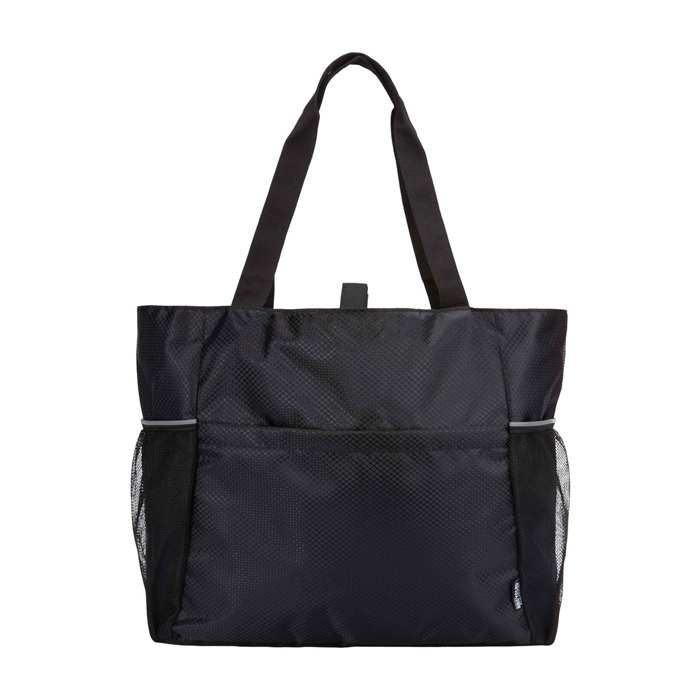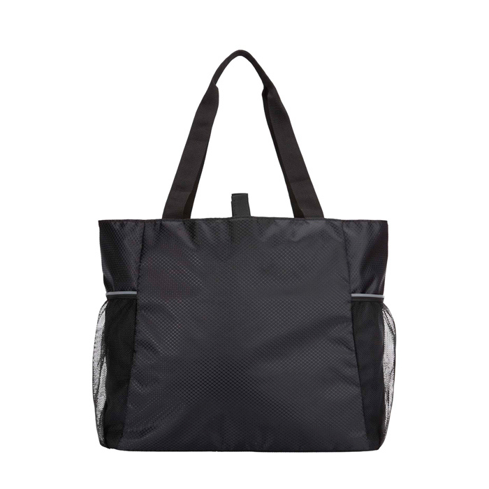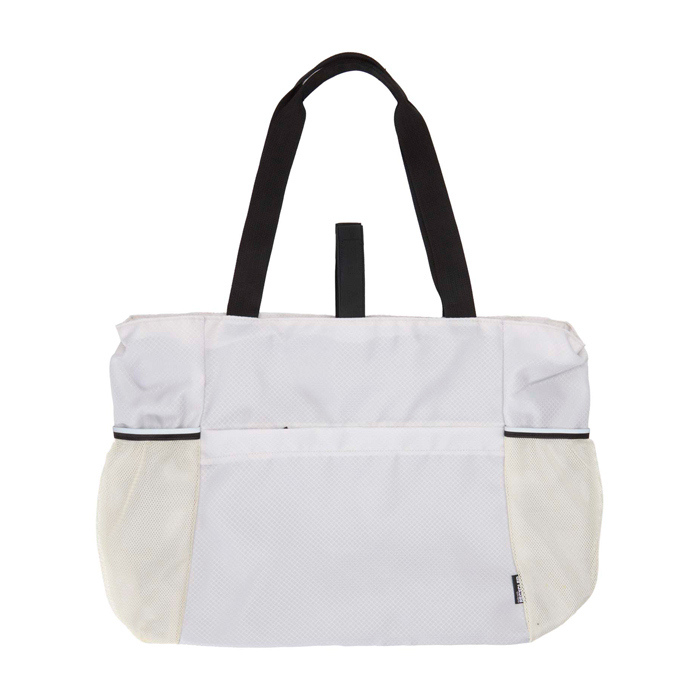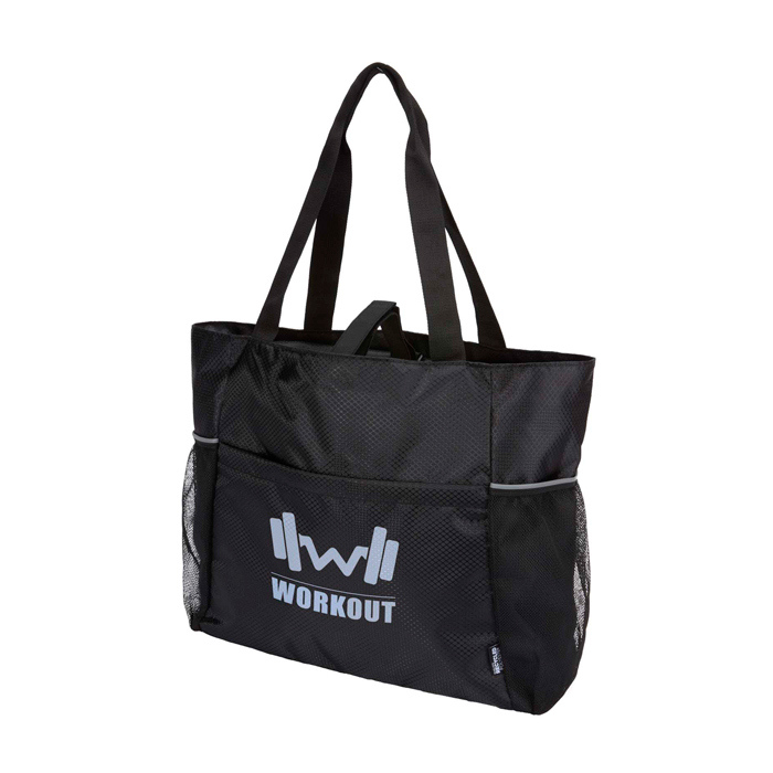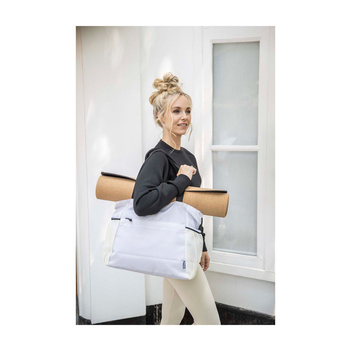 Yoga-Tote-Bag aus recyceltem Ripstop-Gewebe mit GRS-Zertifizierung, wasserabweisender Beschichtung, GRS-zertifiziertem RPET-Futter und reflektierenden Details. Sie verfügt über ein geräumiges Hauptfach mit Reißverschluss, mehrere Innen- und Außentaschen zur organisierten Aufbewahrung sowie elastische Gurte mit Klettverschluss an der Oberseite, um eine Yoga- oder Strandmatte sicher zu befestigen. Mit ausreichend Platz für Handtuch, Trinkflasche, Wechselkleidung und persönliche Gegenstände ist sie sowohl für Sport und Freizeit als auch für den täglichen Gebrauch bestens geeignet.