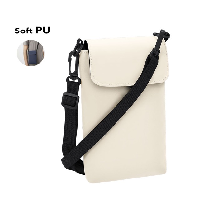 Umhängetasche aus Kunstleder mit weicher Oberfläche, konzipiert, um kleine Arbeitsutensilien oder Reiseausrüstung ordentlich zu transportieren. Das Hauptfach wird mit Überschlag und Klettverschluss geschlossen, für schnellen Zugriff ohne Aufwand. Sie verfügt über einen flachen, verstellbaren Gurt mit doppelter Befestigung über drehbare Karabinerhaken, praktisch zum Aufhängen, zum Befestigen an einer Tasche oder zum Tragen über der Schulter. Eine praktische Option für Merchandising-Aktionen, Ausgaben bei Veranstaltungen oder als Aufmerksamkeit beim Onboarding von Mitarbeitern.
