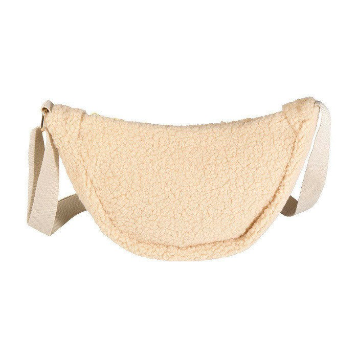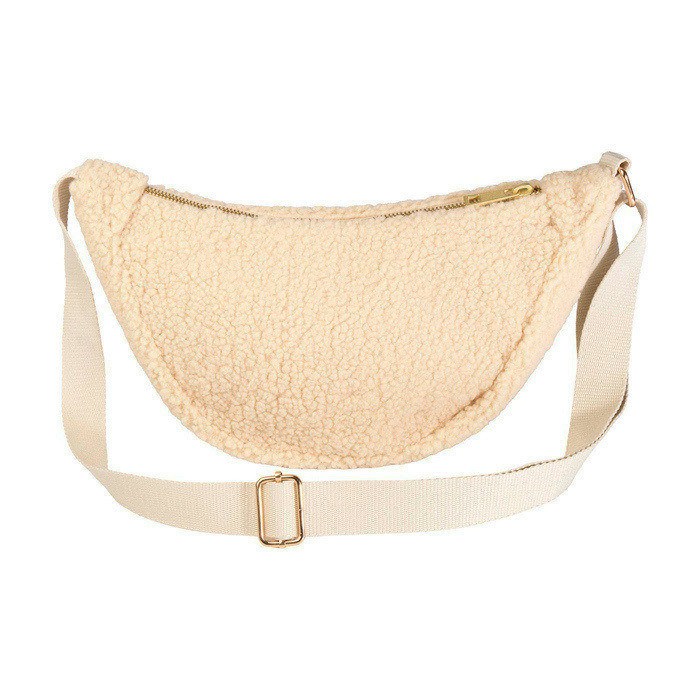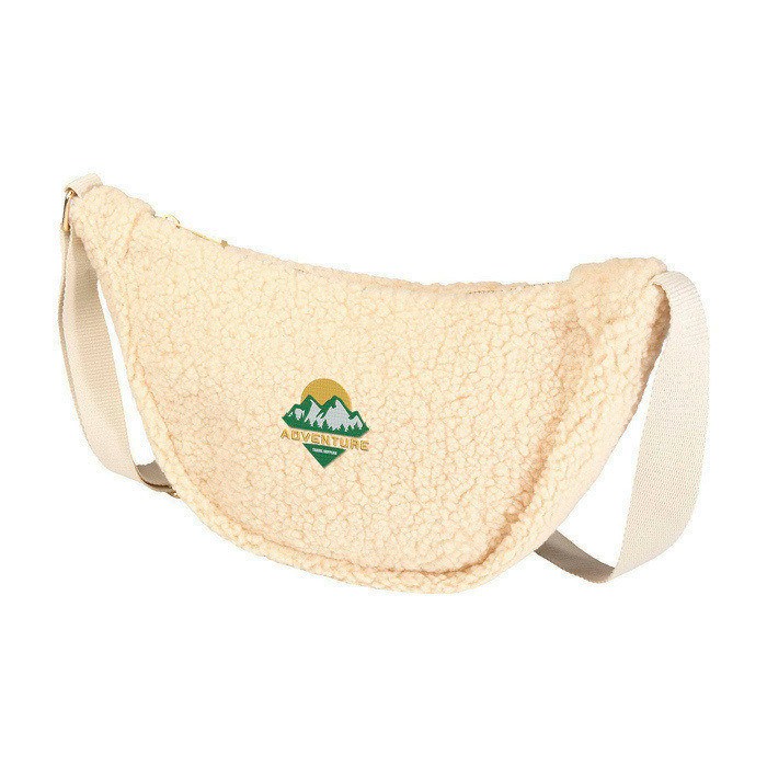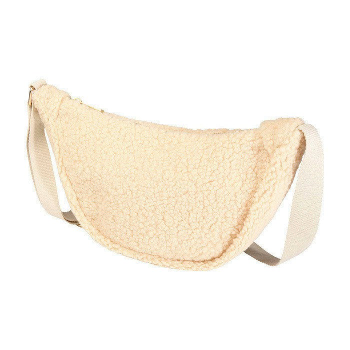 Umhängetasche aus Sherpa-Fleece, gefertigt aus GRS-zertifiziertem, recyceltem Polyester. Sie verfügt über ein geräumiges Hauptfach und verstellbare Schultergurte, die hohen Tragekomfort bieten – eine praktische und stilvolle Wahl für den täglichen Gebrauch.