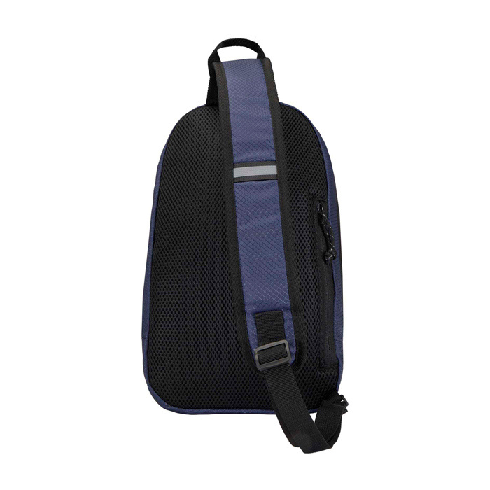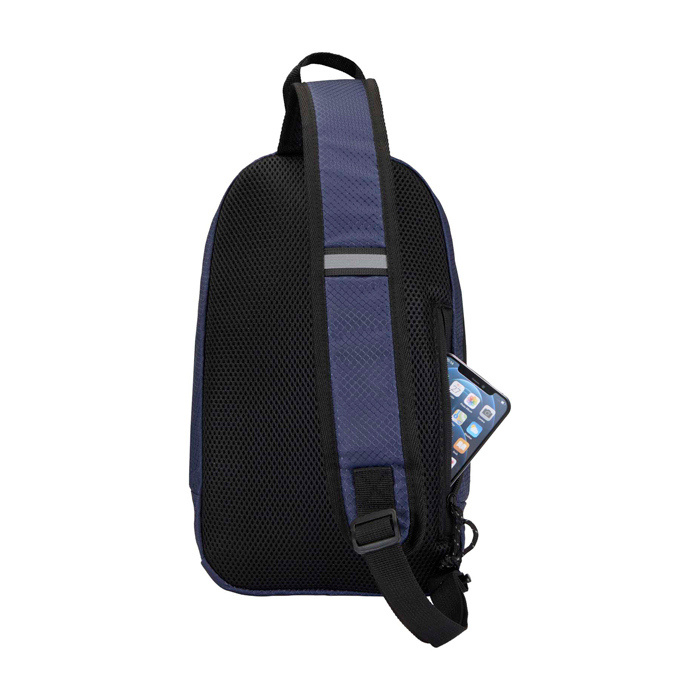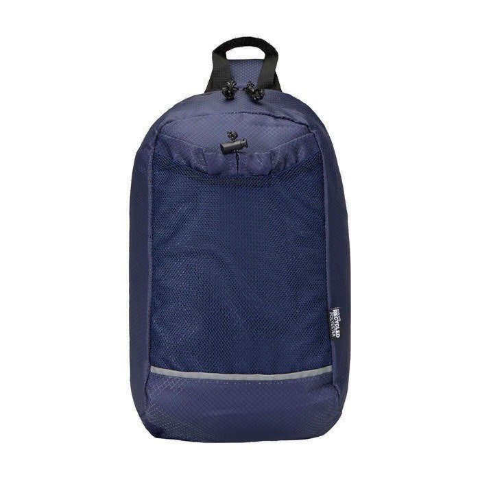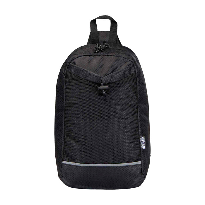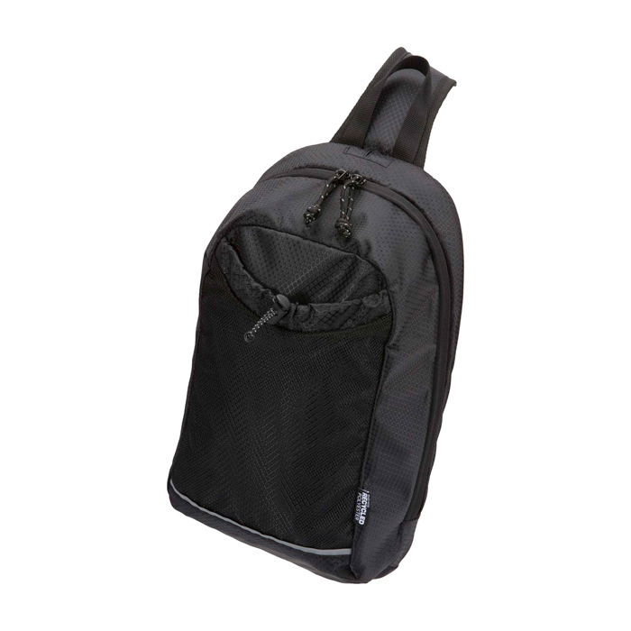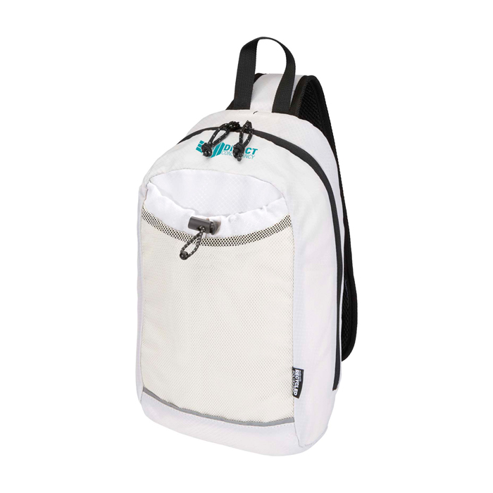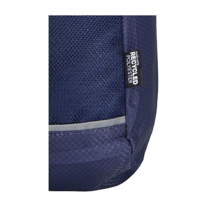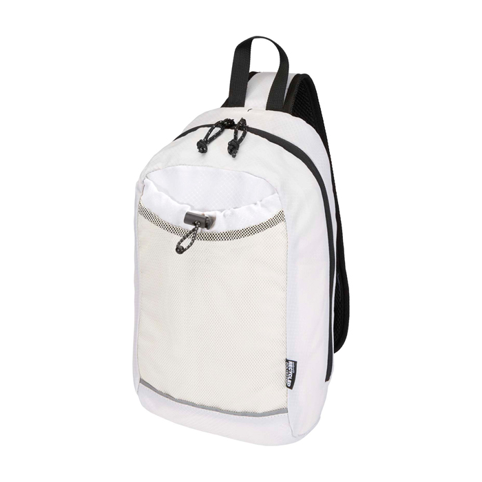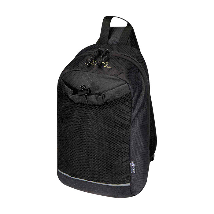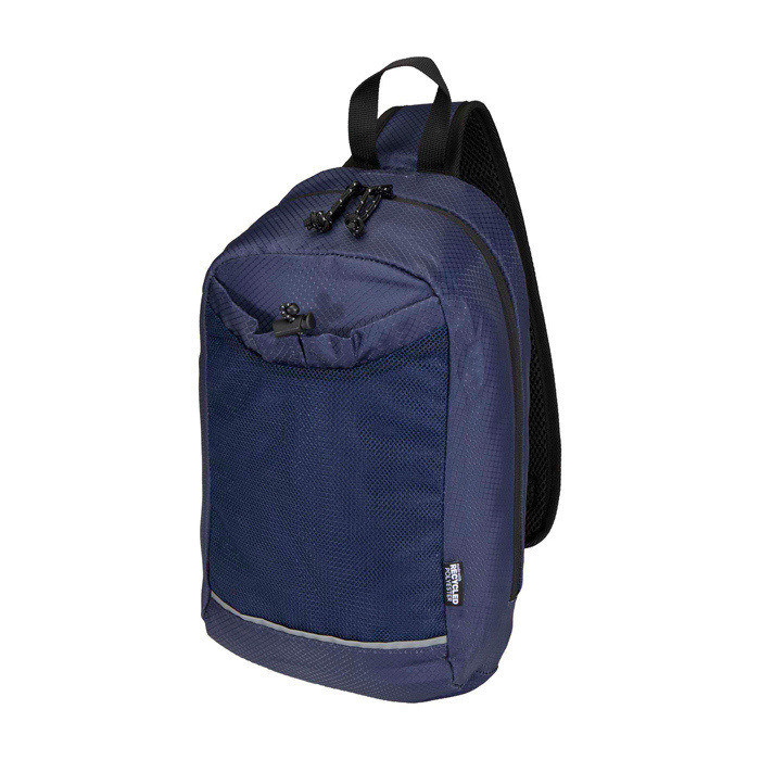 Hydration-Crossbody-Tasche aus recyceltem Ripstop-Gewebe mit GRS-Zertifizierung, wasserabweisender Oberfläche, GRS-zertifiziertem RPET-Futter und reflektierenden Elementen. Sie verfügt über ein Hauptfach mit Reißverschluss und innenliegender Einschubtasche, eine Mesh-Fronttasche mit elastischen Kordeln zur Befestigung einer Trinkflasche sowie eine schnell zugängliche Rücktasche für Smartphone oder kleine Gegenstände. Mit verstellbarem Schultergurt und atmungsaktivem Mesh-Rückenpolster für hohen Tragekomfort. Fassungsvermögen: 6 Liter.