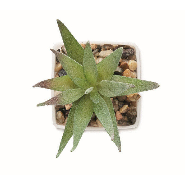 Mini-Kunstpflanze aus PP in Aloe-vera-Form, konzipiert für Schreibtische, Theken oder Wartebereiche – ganz ohne Gießen oder Pflege. Das Kunststoffmaterial sorgt für geringes Gewicht und erleichtert die Reinigung, sodass sie sich einfach bewegen und neu platzieren lässt. Durch ihre kompakte Größe wirkt sie dezent in Arbeitsbereichen oder an Kundenempfangspunkten. Praktische Option für Willkommenspakete, Event-Kits oder Firmengeschenke im Büro.