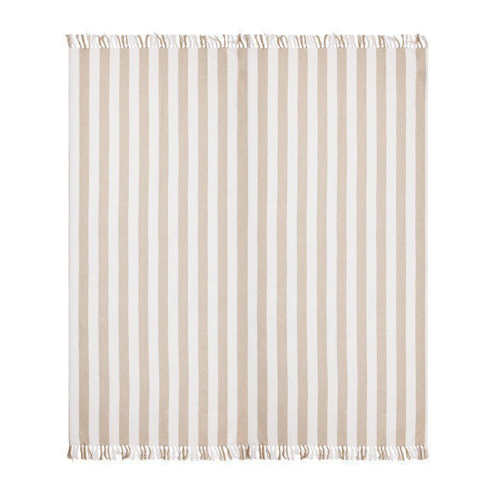 Hammam-Familienhandtuch aus einem Baumwoll-Polyester-Mischgewebe. Mit klassischem zweifarbigen Streifenmuster und Fransen an den Seiten. Dank der großzügigen Maße von 180×180 cm kann es von mehreren Personen genutzt werden. Sowohl am Strand als auch im Schwimmbad einsetzbar. Das Gewebe mit 200 g/m² ist leicht und luftig. Es ist darauf ausgelegt, Komfort zu bieten, ohne zu viel Platz einzunehmen. Es kombiniert das angenehme Gefühl von Baumwolle mit der schnellen Trocknung von Polyester. GRS-zertifiziert (Global Recycled Standard). Ideal für Markenaktionen bei Sommerveranstaltungen oder zur Begrüßung von Teams.