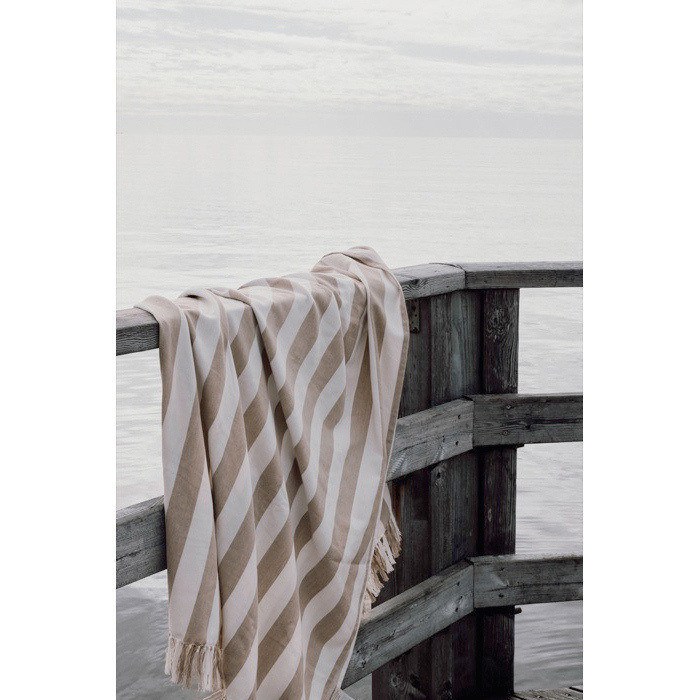 - Hammam-Familienhandtuch mit zweifarbigen Streifen und Seitenfransen