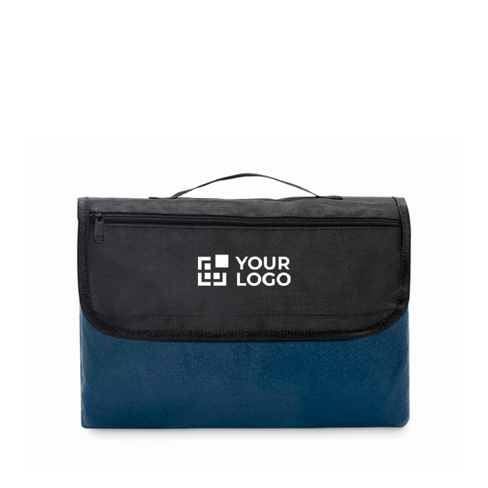 Faltbare Picknickdecke aus Fleece mit Tragegriff als Werbeartikel