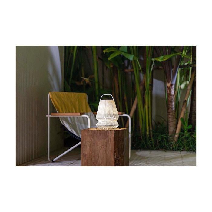Mobiler Lampenschirm aus recyceltem Küstenkunststoff, um vielseitige Lichtpunkte in Innen- und Außenbereichen zu schaffen. Das kompakte Format erleichtert Transport und Aufbau und ermöglicht unterschiedliche Konfigurationen je nach Umgebung. Er kann mit einem Solarmodul für den Außeneinsatz ergänzt werden, mit einem Hängekabel zur hängenden Installation oder mit einem Kabel mit Schalter, um ihn in eine Steh- oder Tischlampe zu verwandeln. Eine praktische Option, um Events, Unternehmensterrassen oder Gemeinschaftsbereiche mit Markenidentität zu inszenieren.