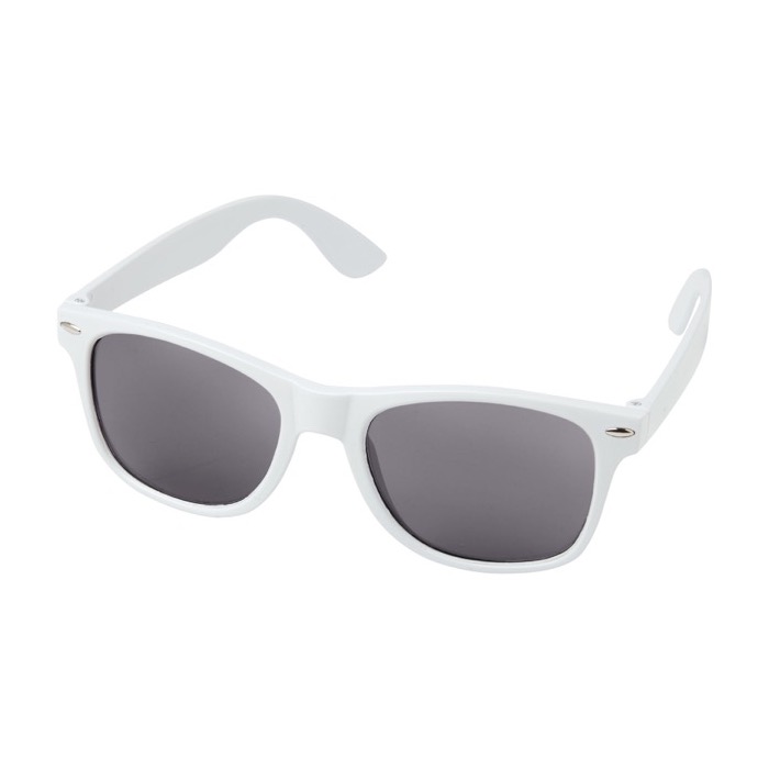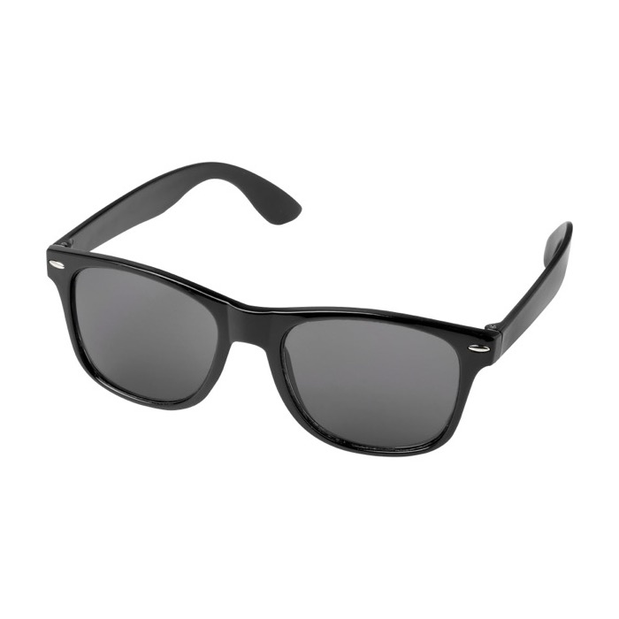 Nachhaltige Sonnenbrille aus recyceltem PET-Kunststoff im Retro-Design ist ideale Werbeartikel für Sommerfestivals oder andere sonnige Aktivitäten im Freien. Entspricht Norm EN ISO 12312-1, mit UV400-Gläser der Kategorie 3.