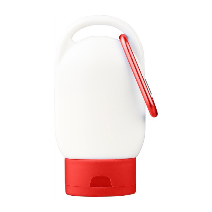 - Sonnenlotion in der Tube mit Karabiner für schnelles Befestigen