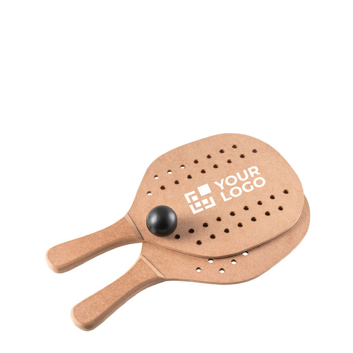 Strandschläger-Set aus MDF mit Ball, geliefert in einer praktischen Baumwolltasche. Perfekt als Sommer-Werbegeschenk oder für Teamaktivitäten.