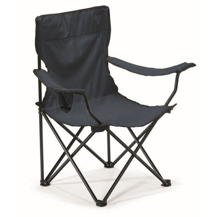 Bringen Sie Ihr Logo an den Strand und zum Camping mit diesen Klappstühlen. Mit einer Metallstruktur und einem Stoff aus 600D-Polyester, verfügt sie über einen Netz-Getränkehalter am rechten Arm, was das Erlebnis und den Komfort für denjenigen, der darauf sitzt, erhöht. Eine Nylonhülle ist inklusive, was den Transport erleichtert, und sie hält bis zu 100 kg Gewicht aus. Fügen Sie Ihr Logo auf der Rückseite des Stuhls oder auf der Hülle mittels Siebdruck, digitalem Druck oder reflektierendem Transfer hinzu und garantieren Sie die Sichtbarkeit Ihrer Marke auch in der Urlaubssaison.