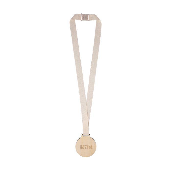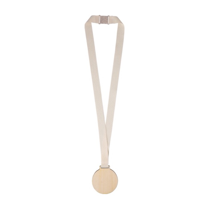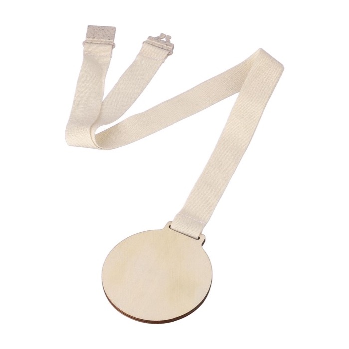 Holzmedaille mit Baumwollband und Sicherheitsverschluss