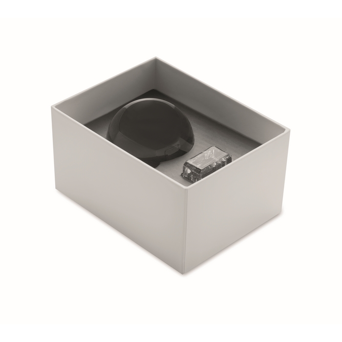 Runde Kristallauszeichnung mit Sockel, präsentiert in Geschenkbox. Ein Unternehmenssymbol, das Anerkennung bei jedem Wettbewerb vermittelt.