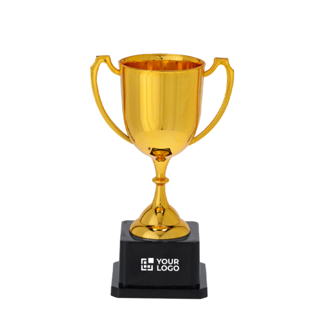 Klassische goldene Trophäe mit seitlichen Griffen und schwarzem Sockel