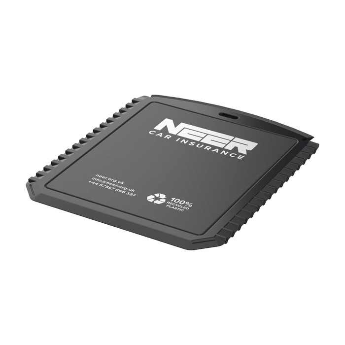 Kompakter und praktischer Eiskratzer aus 100 % recyceltem Kunststoff, ideal für die Wintermonate. Robuste Konstruktion für effektives Entfernen von Eis und Frost. Mit glattem Rand, gezahntem Rand und Scheibenreiniger, wodurch er zu einem vielseitigen und funktionalen Autozubehör wird.