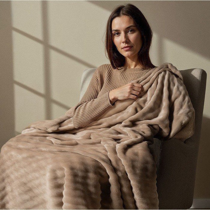Wärmen Sie sich mit einer großen Polyesterdecke, mit weicher Oberfläche und dekorativer Struktur, die Komfort und einen besonderen Akzent in jedem Raum bietet.