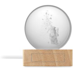 Kristall-Weihnachtskugel mit LED-Licht (100 Lumen) auf Holzsockel. Inkl. USB-Ladekabel (90 cm).