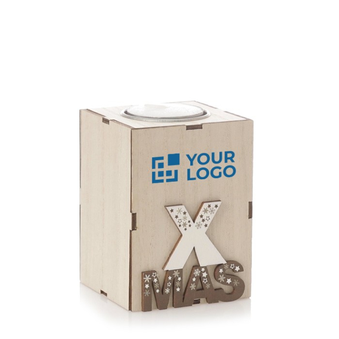 Weihnachtlicher Kerzenhalter aus Holz mit Duftkerze für Kunden