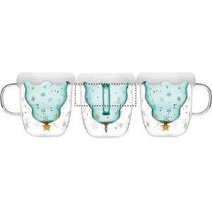 Weihnachtstassen aus Borosilikatglas, innen mit Baummuster. Darüber hinaus ist das Material widerstandsfähiger als herkömmliches Glas und hat eine bessere Qualität.