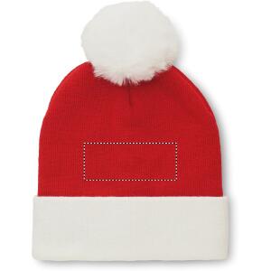 Gestrickte Weihnachtsmütze aus elastischem Acryl mit Bund und Quaste